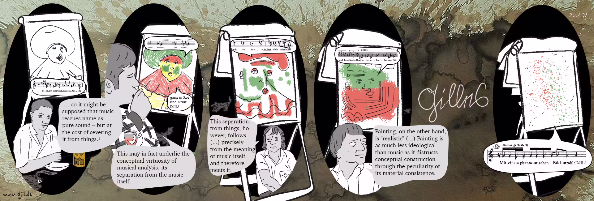 Gilles lines of Sprechgesang are taken from Arnold Schönberg, Pierrot lunaire. Wien 1914. S. 72 f.: 3. Der Dandy.