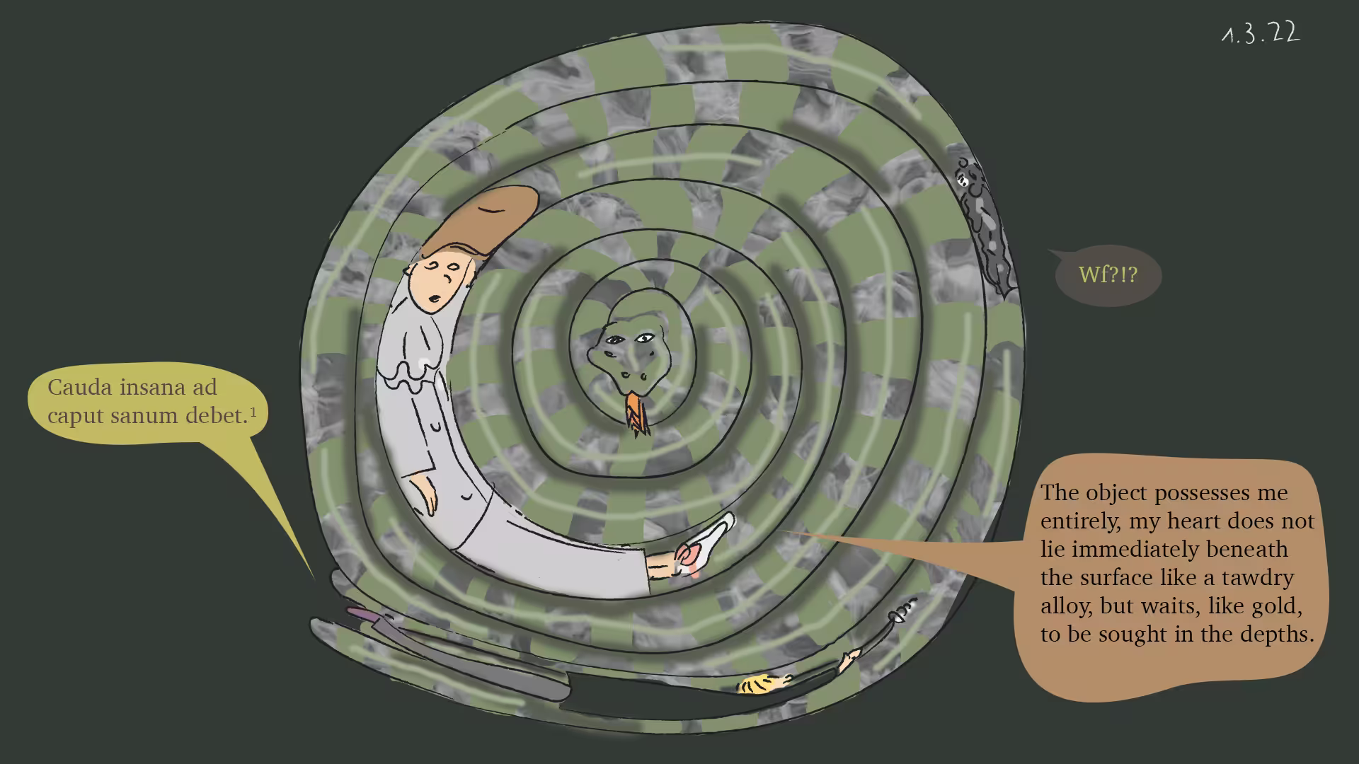 ¹ An unhealthy tail has to go to a healthy head. For that the resulting knot be gorged. Cf. our no. 00067: Mens sana in corpore sano.