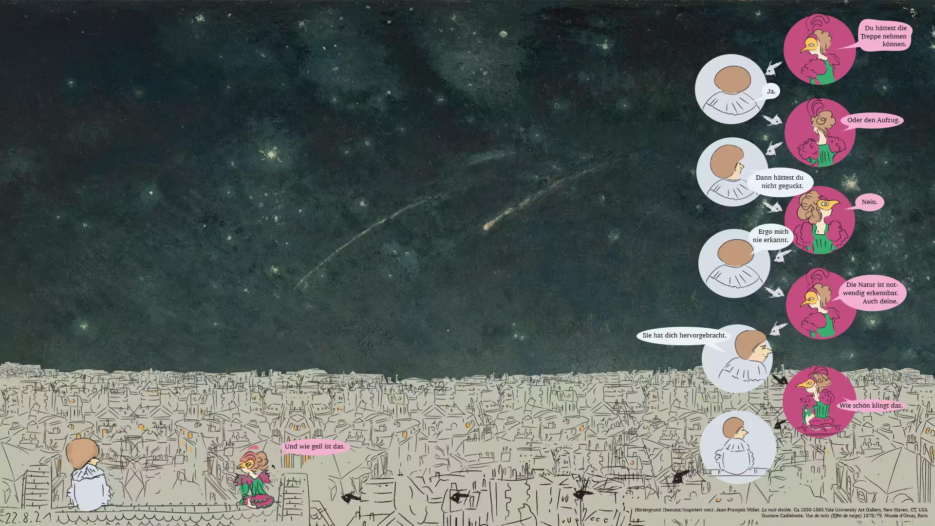 Das Lied aus der Dachrinne stammt aus W. A. Mozart, Zauberflöte. Libretto von Emanuel Schickaneder. Akt 1, Szene 3 (Finale)